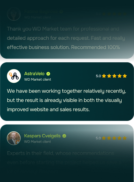 We are very glad WD Market appeared on our way. They built our new modern website mnmebeles.lv with excellent UI/UX and smoothly transferred all data from our large online store. Communication is impeccable, and we continue to grow with their support. We definitely recommend WD Market for website creation and business growth!